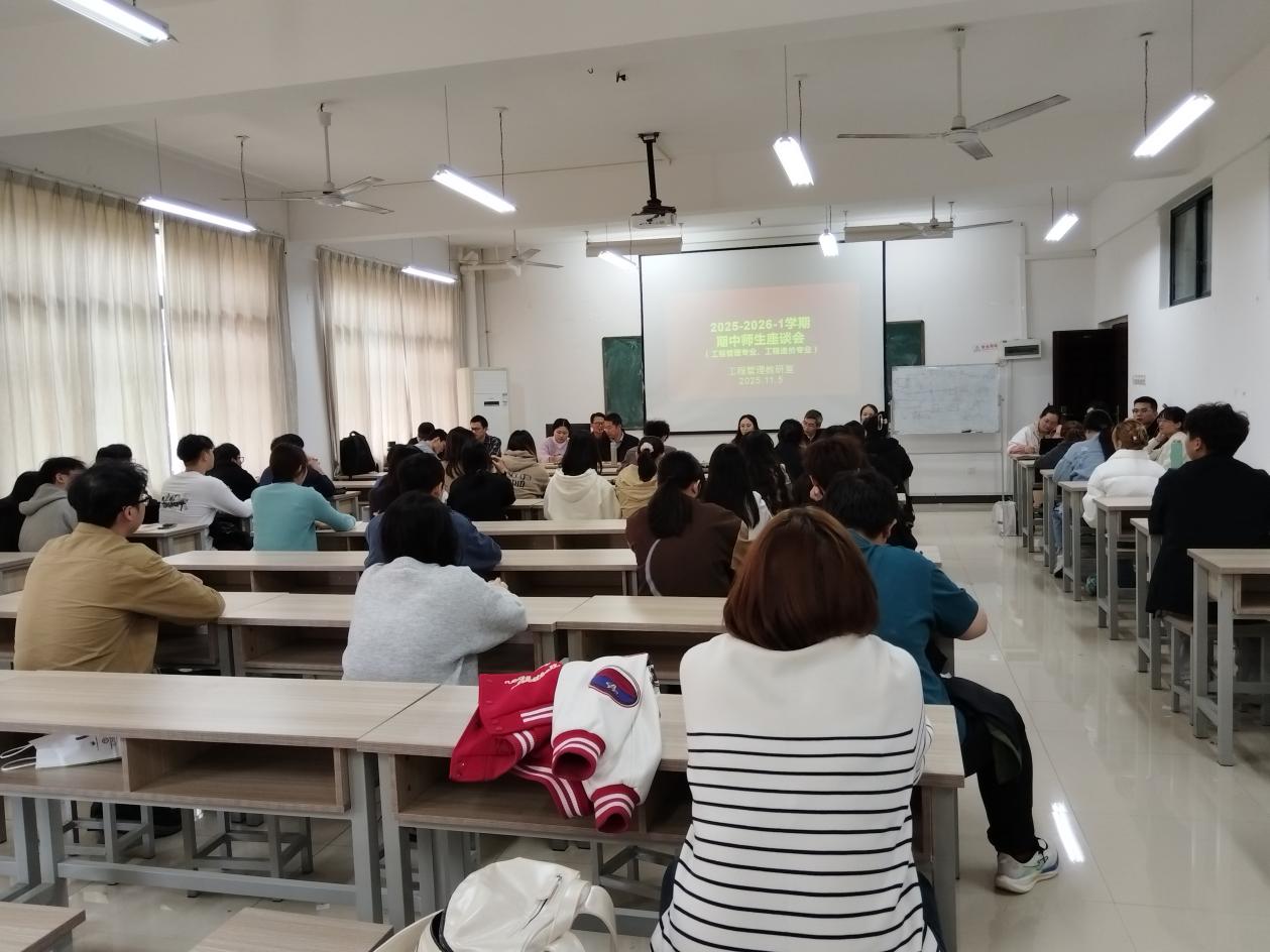 我院工程管理教研室于2310教室召开“20252026年度第1学期工程管理、工程造价专业期中师生座谈会”,教研室主任欧阳命及专任教师、工程管理专业和工程造价专业学生代表共同参与会议。