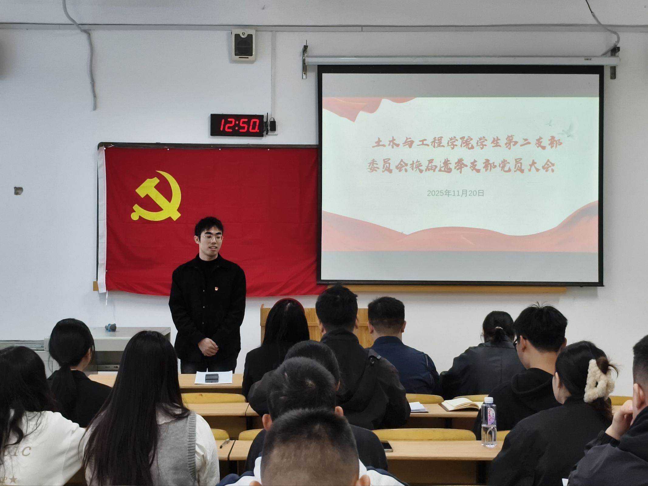 11月20日,中共南宁理工学院土木与工程学院学生第二党支部委员会换届选举党员大会在桂林校区4116教室召开。学生第二党支部书记杨苗培、党支部全体党员参加会议,大会由杨苗培书记主持,严格遵循《中国共产党章程》《中国共产党基层组织选举工作条例》等规定,有序完成各项议程。