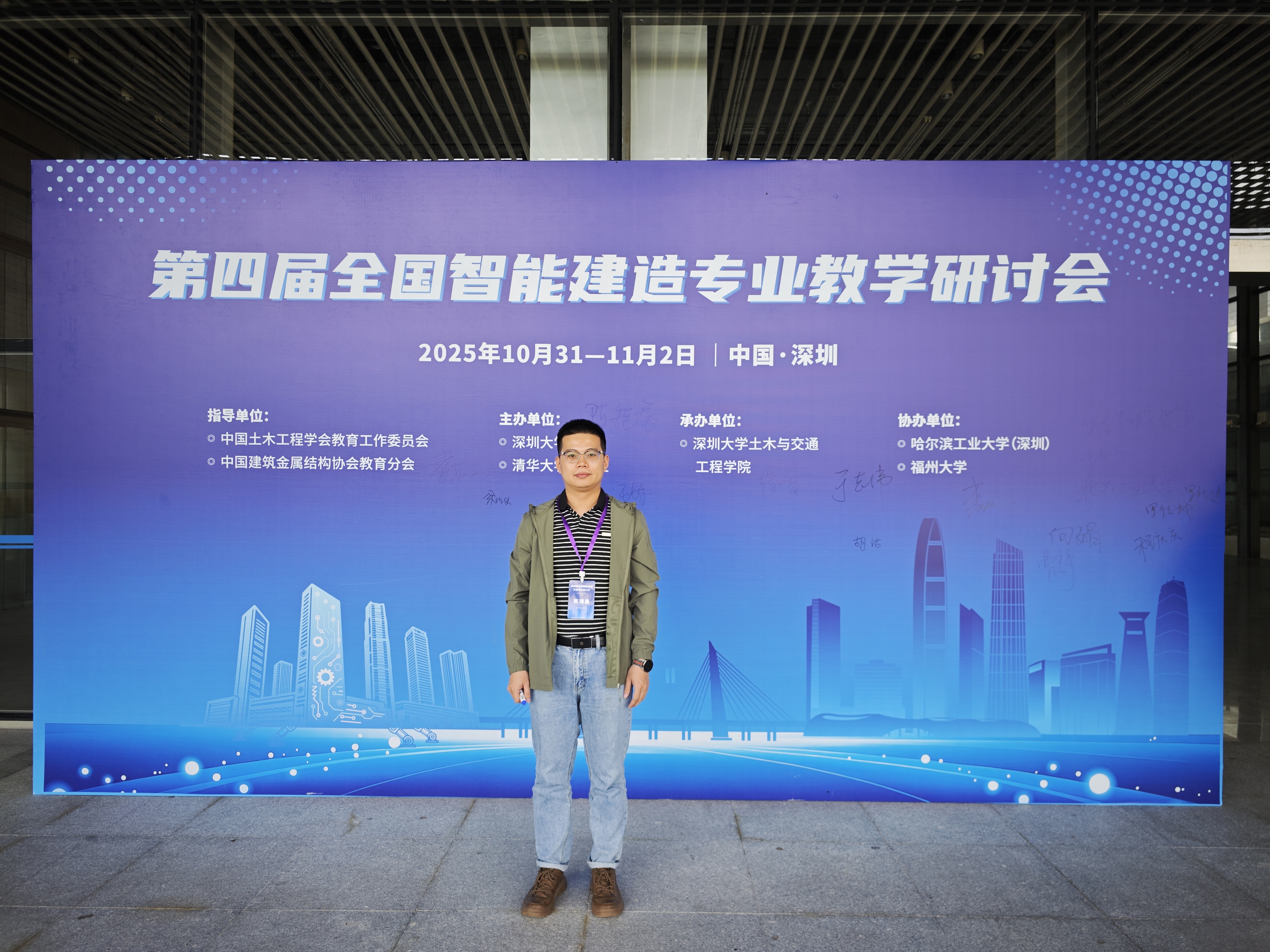 随着信息技术与建筑产业的深度融合,智能建造已成为推动建筑业转型升级的关键力量。为推动学校智能建造专业教育高质量发展,提升教师在智能建造领域的教学科研水平,2025年10月31日至11月2日,土木与工程学院陈链鑫老师赴深圳参加由深圳大学与清华大学出版社主办的第四届全国智能建造专业教学研讨会。本次会议得到鲁班智能建造产业学院的大力支持,旨在通过系统学习推动学院教学科研与其他院校深度对接。