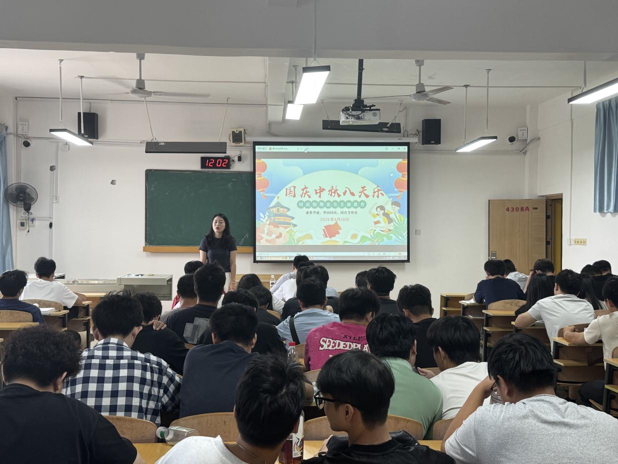 中秋逢国庆,佳节启新程。为保障大学生假期安全、引导文明出行,2025年9月29日,我院建筑学2201班、土木2212-2213班召开国庆中秋假期离校主题班会。