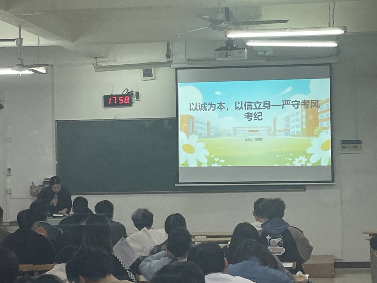 12月18日,为进一步强化班级学风建设,引导学生树立诚信考试理念,明确考试纪律要求,营造公平公正、严肃有序的期末考试氛围,近日,工程管理2209-2212班级在1205教室召开期末考试考风考纪主题班会。班会由辅导员主持,全班同学悉数参加。