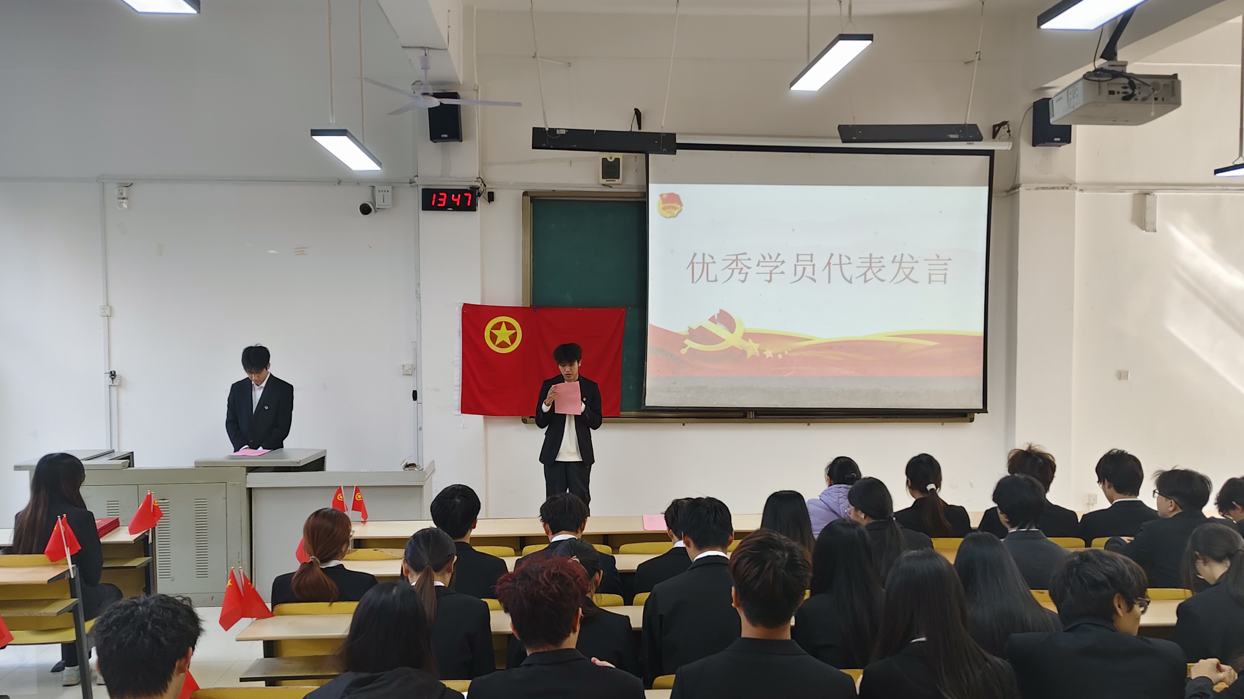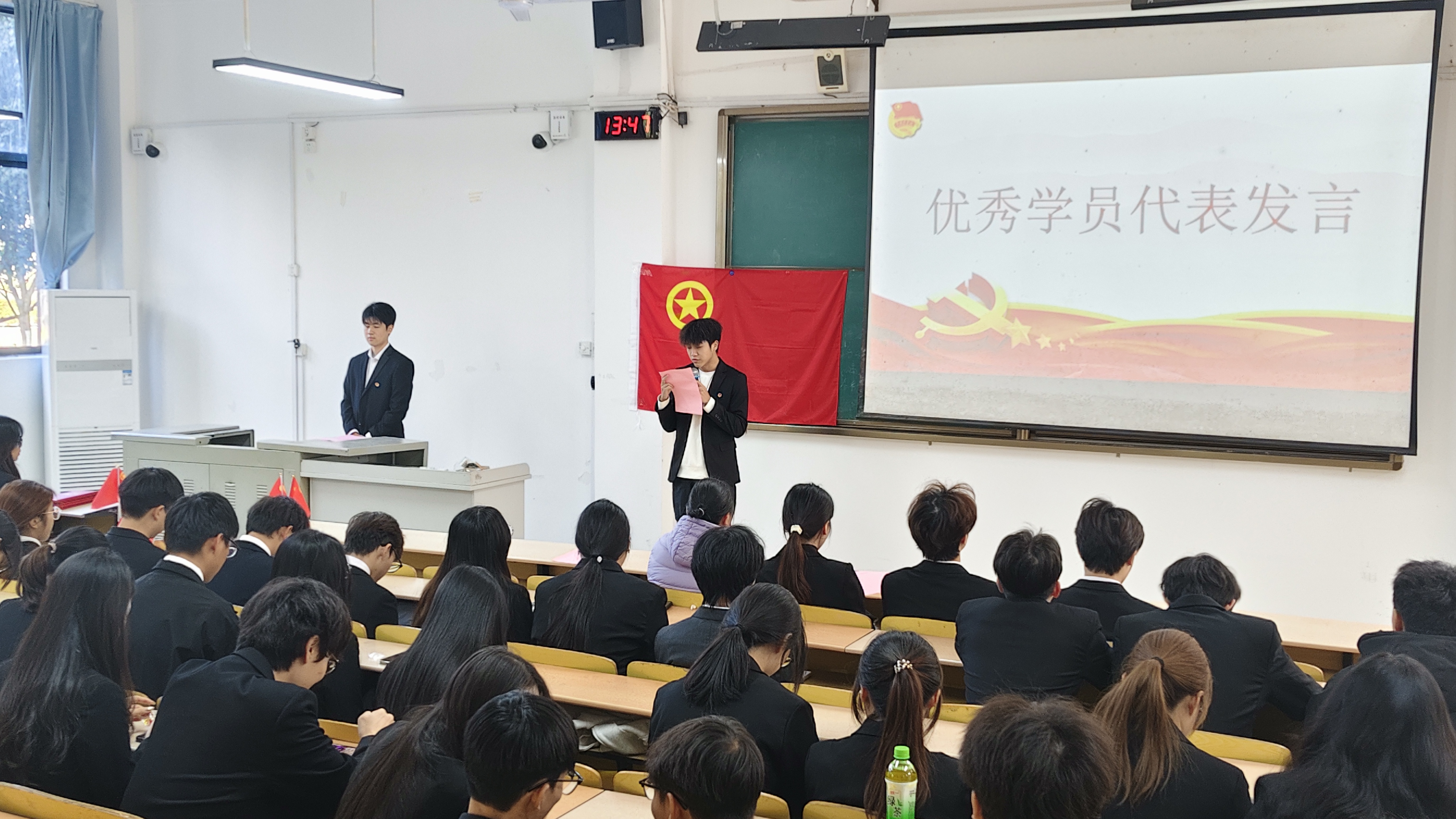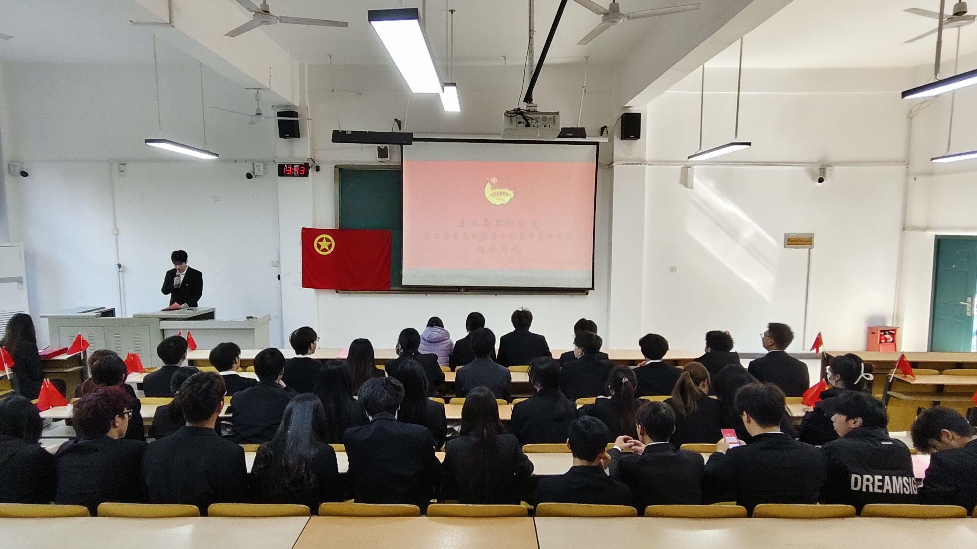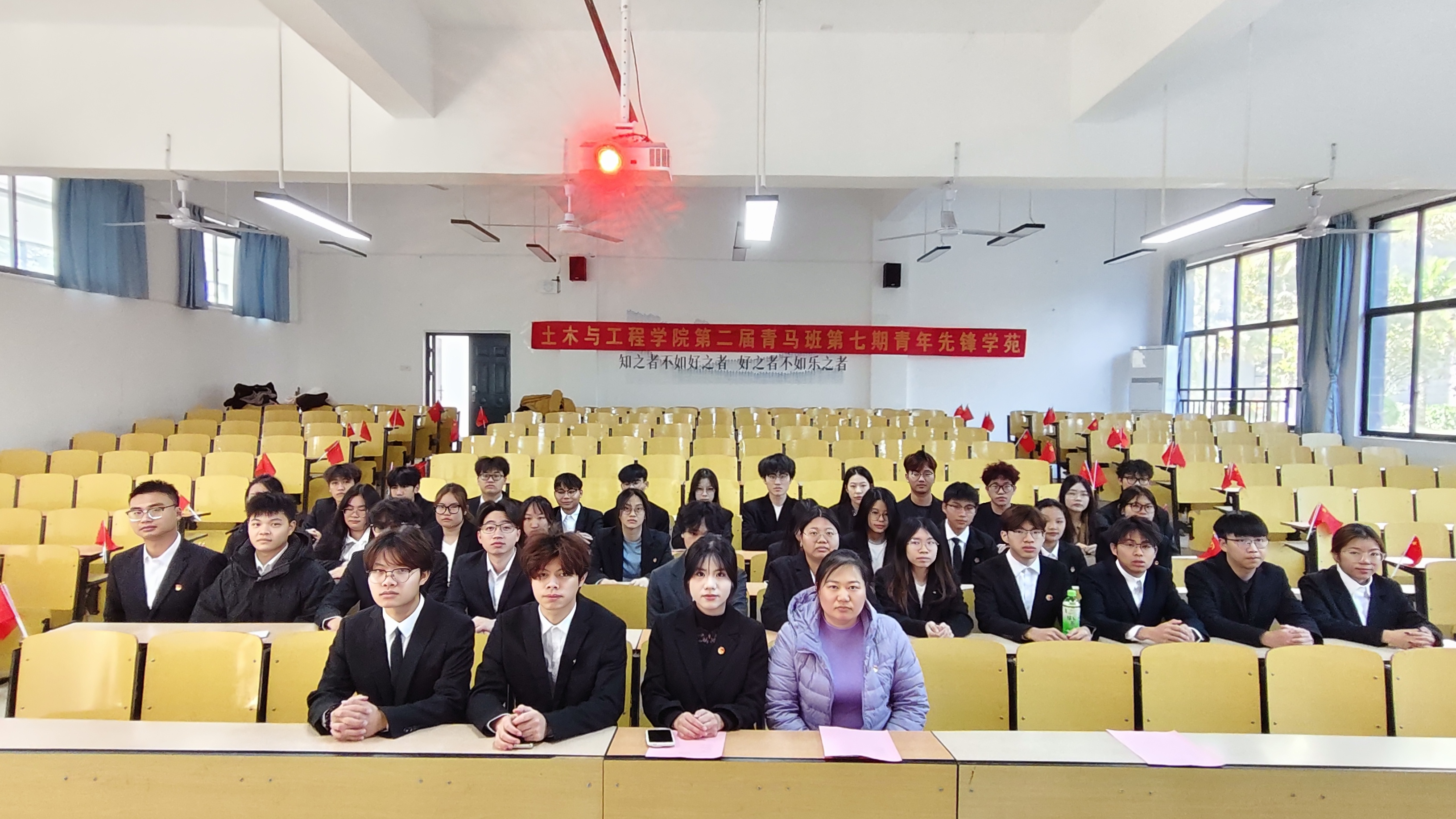 在庄严肃穆的氛围里,全体学员起立齐声合唱团歌,铿锵的旋律、坚定的歌声,不仅展现出青马学员的精神风貌,更传递出对马克思主义信仰的坚守与追求。