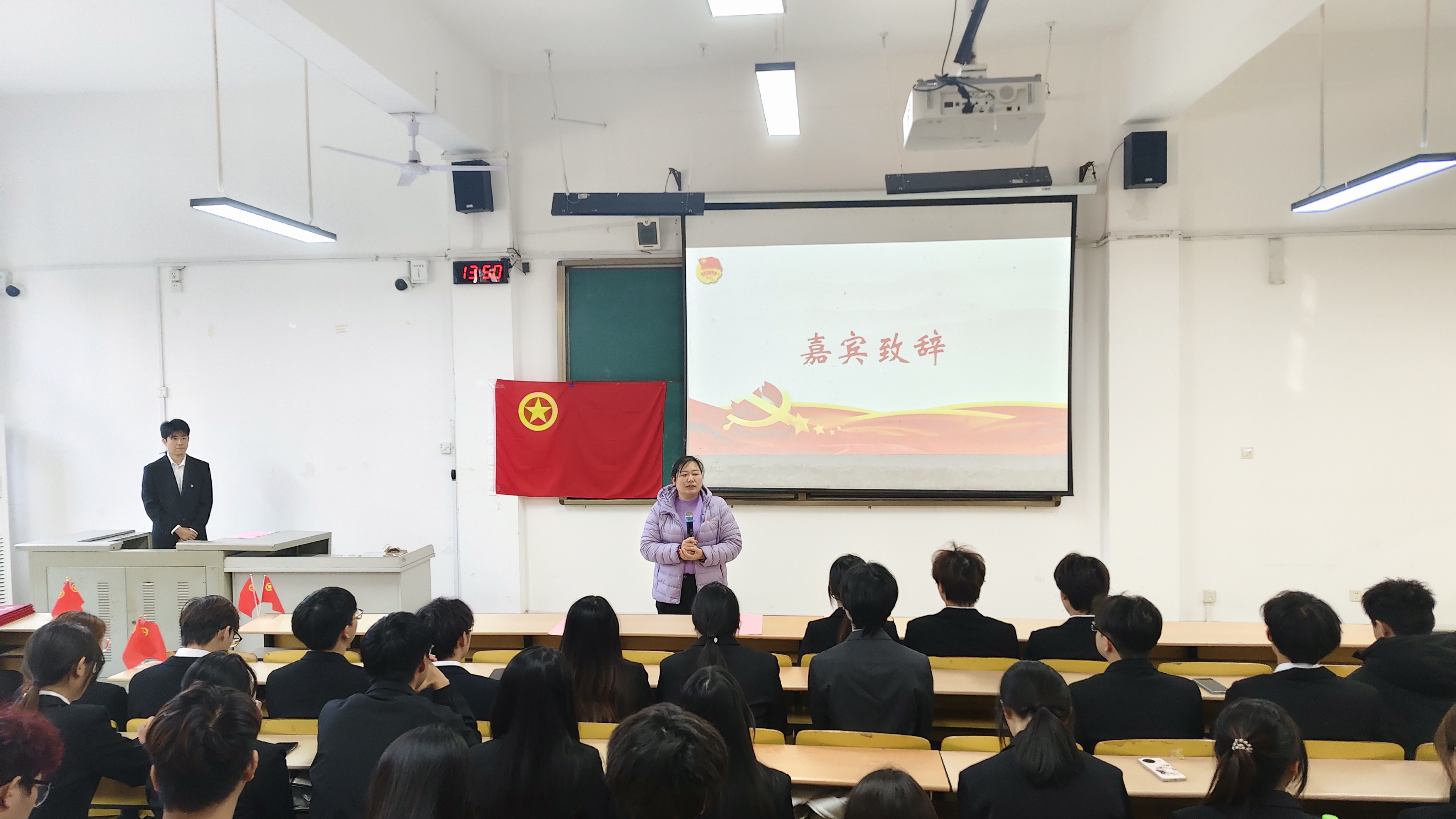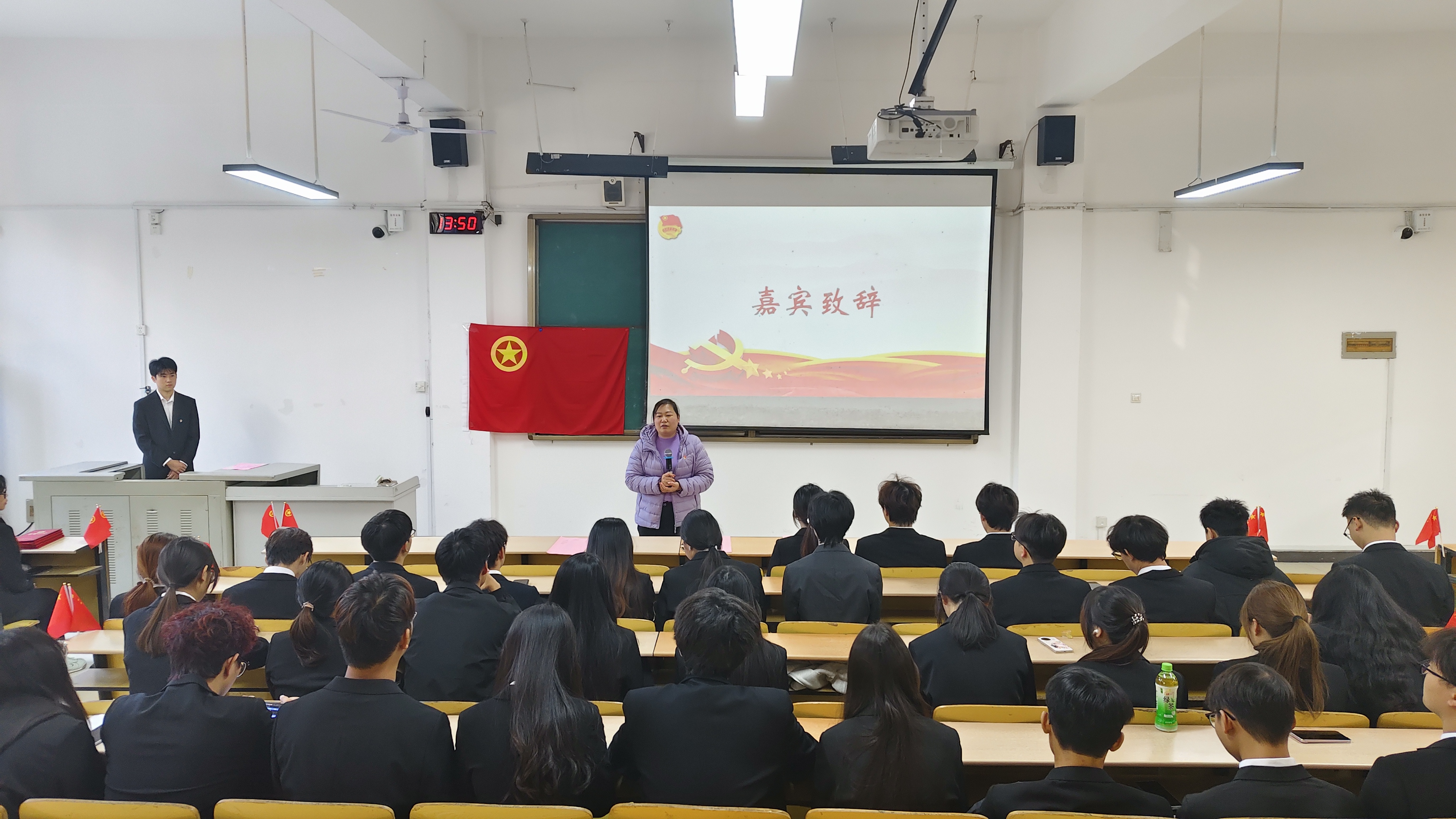 仪式在主持人饱含热情的开场词中正式启幕,其对青马班培训历程的简要回顾,瞬间勾起了学员们的共同回忆。随后,主持人介绍嘉宾,全场以热烈掌声向关心青年成长的老师致以敬意。