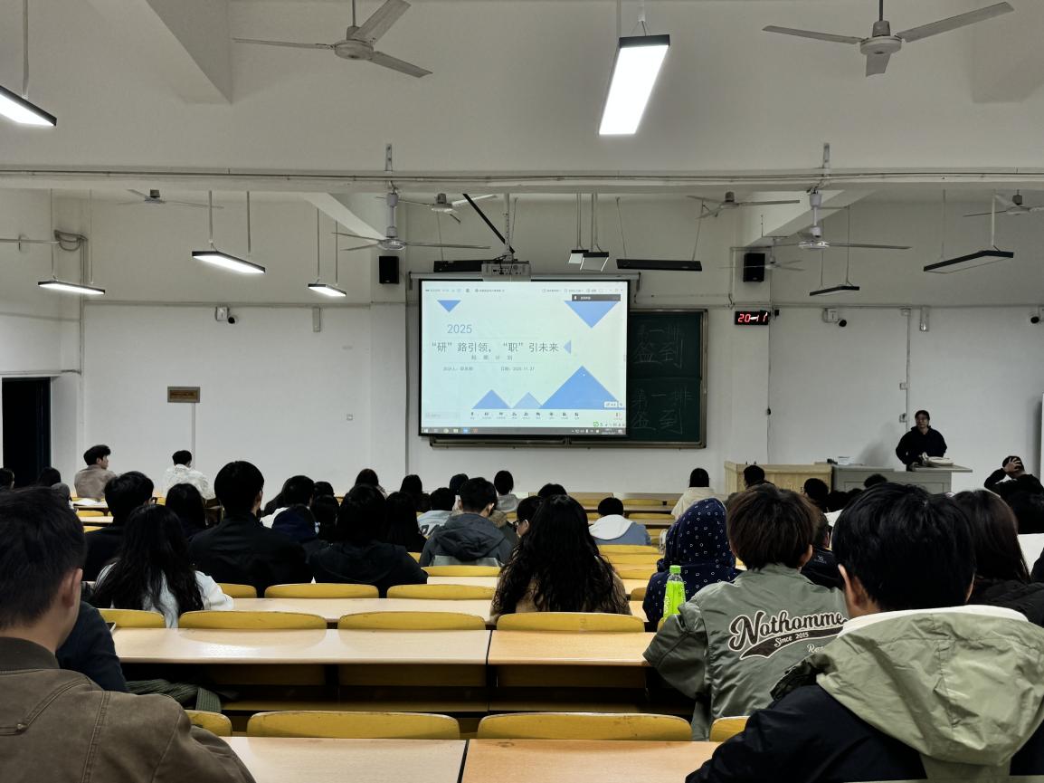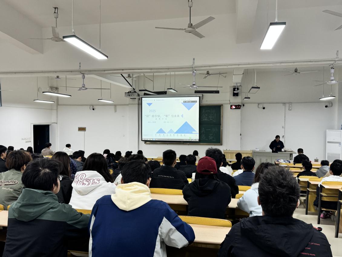 讲座最后,邸老师结合自身考研与职场经历,与现场同学进行了亲切交流。他分享了备考过程中的艰辛与收获,以及初入职场后的成长与感悟,鼓励同学们保持积极向上的心态,勇于追求梦想,在人生的道路上坚定前行。升学和就业,都可以作为同学们的发展选项,通过在校的学习和日常的社会接触,不断明确自己的成长需求,并制定适合的规划,逐步提升,日渐进步。
