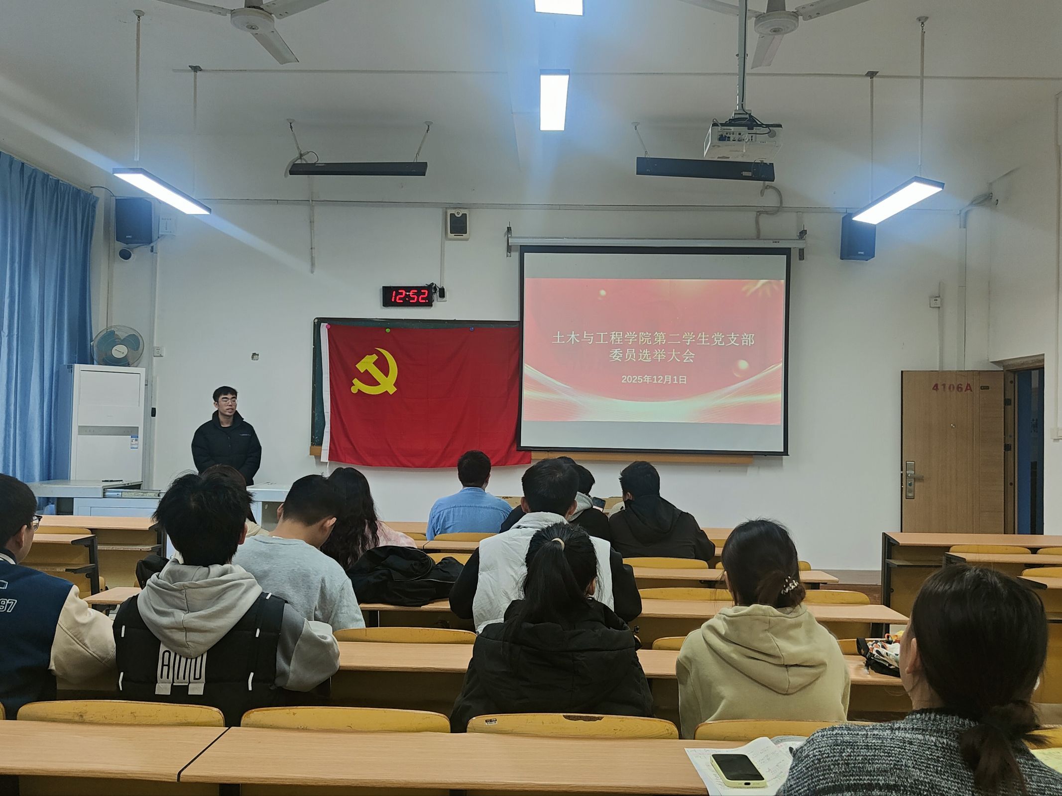 此次支部委员选举大会的顺利召开,为南宁理工学院土木与工程学院学生第二党支部注入了新的领导力量,进一步完善了支部组织架构。未来,新支委会将带领全体党员以更加饱满的热情、更加务实的作风,推动支部党建工作再上新台阶,为服务国家基建事业、培育新时代工科人才提供坚强的组织保障。