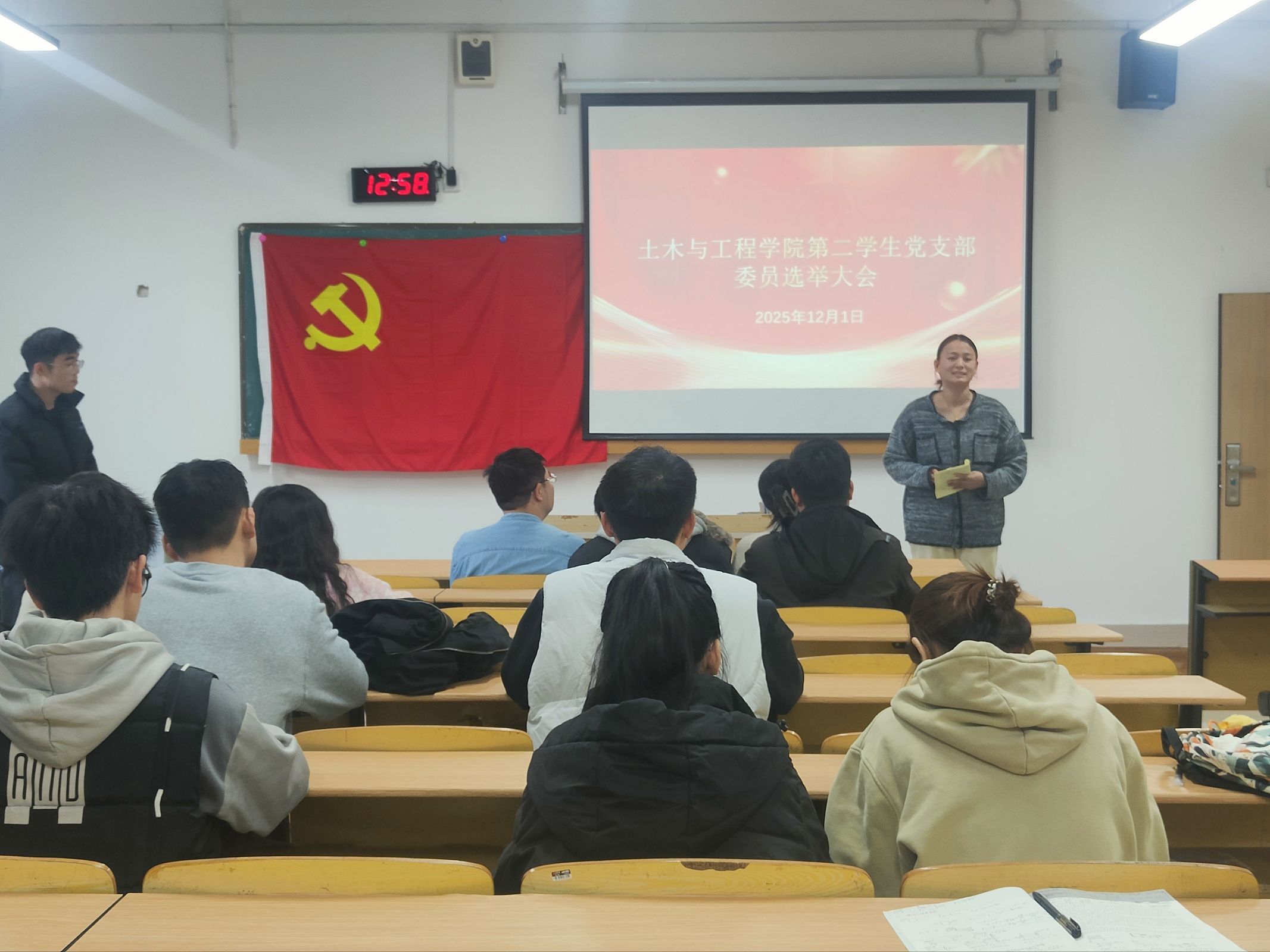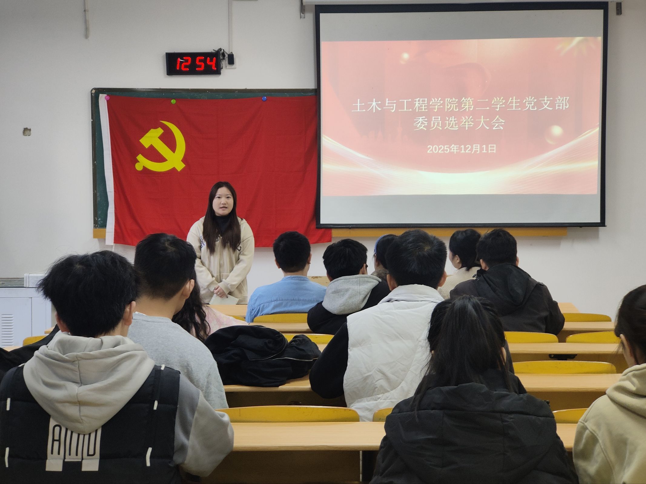 第二学生支部书记陈素任对三位成功竞选的同志表示祝贺,并希望以此次选举为新起点,牢记初心使命,立足岗位职责,紧密结合土木工程专业特点开展工作:支部副书记将协助书记统筹支部日常事务,推动理论学习与专业实践深度融合;纪律委员将严格落实党员监督管理职责,筑牢支部纪律防线;统战委员将加强与党外青年学生的联系,凝聚专业领域青年力量,共同为支部建设与学院发展贡献力量。