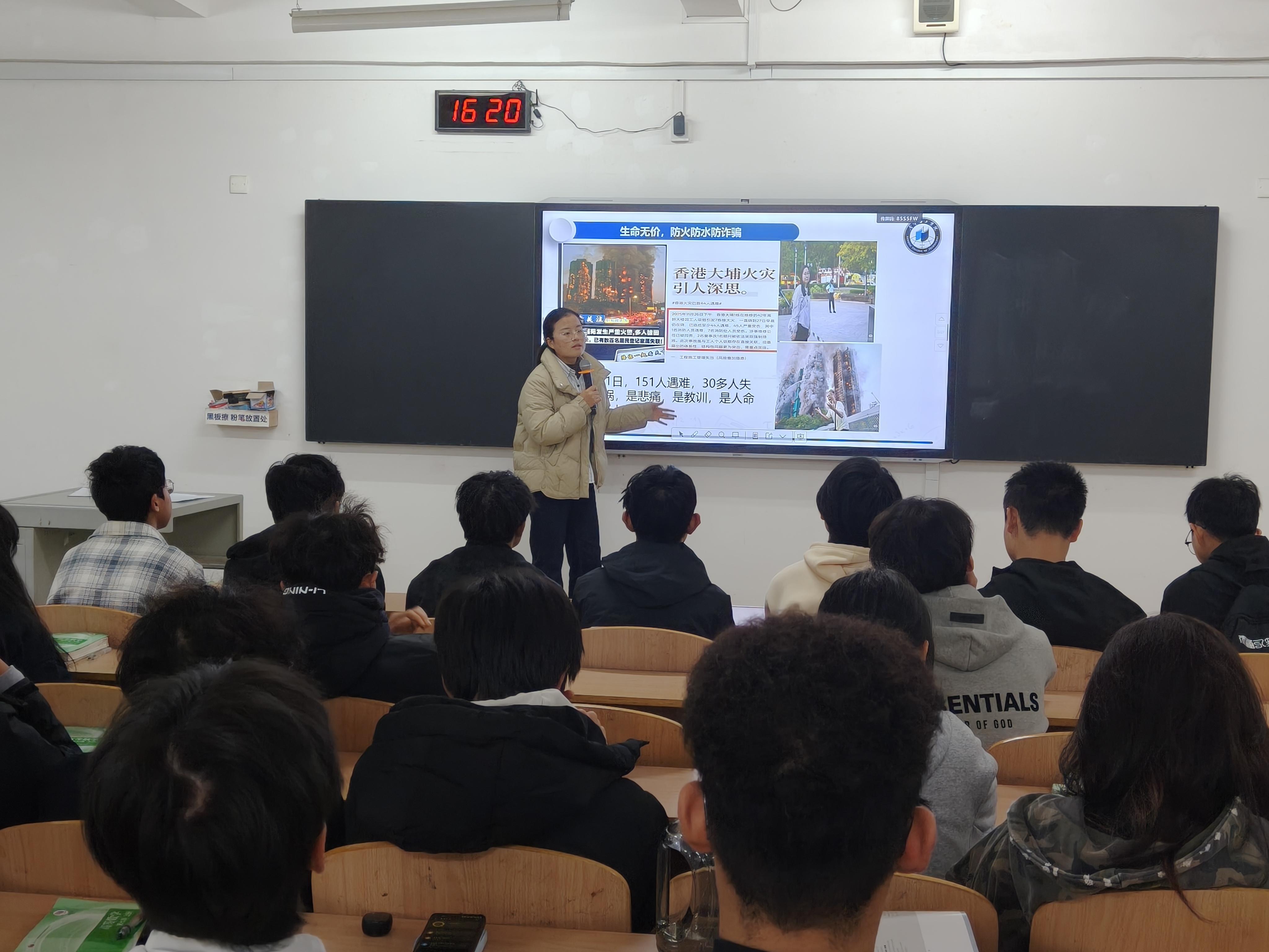 班会以香港大埔宏福苑重大火灾事故为警示案例,深入剖析安全隐患危害,明确宿舍用水用电规范及防诈骗核心准则,为学生校园生活筑牢安全屏障。结合案例强调,校园宿舍作为人员密集场所,任何微小的安全疏忽都可能引发严重后果,必须以此次事故为镜,时刻绷紧安全之弦。
