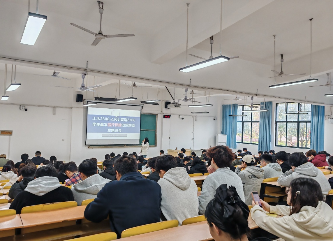 为切实保障学生切身利益,帮助同学们全面了解学生基本医疗保险相关政策,熟练掌握医保参保、报销流程及医保使用意识,2025年12月1日上午11:20分,土木2306-08班与智造2306班在李晶晶老师的组织下,召开学生基本医疗保险政策解读主题班会,全班悉数参与。