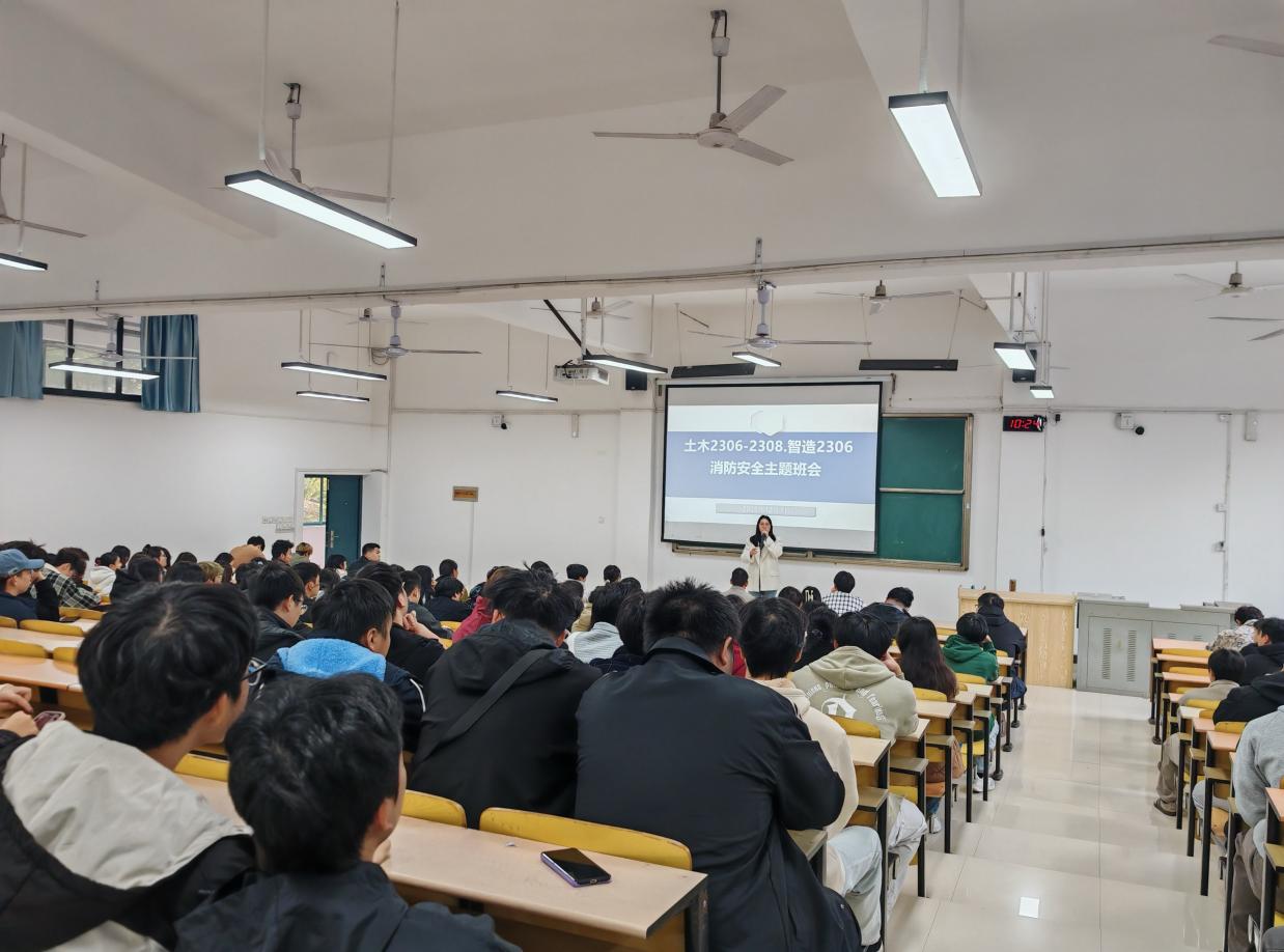 为进一步增强同学们的消防安全意识,普及消防安全知识,提高应对火灾等突发事故的应急处置能力,2025年12月1日上午10:20分,土木2306-08班、智造2306班在4103教室开展了一场别开生面的消防安全主题班会。