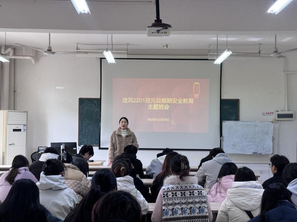 元旦假期将至,为保障大学生假期安全、引导学生文明出行,2025年12月26日,我院建筑学2201班在2310教室召开国庆中秋假期离校主题班会。