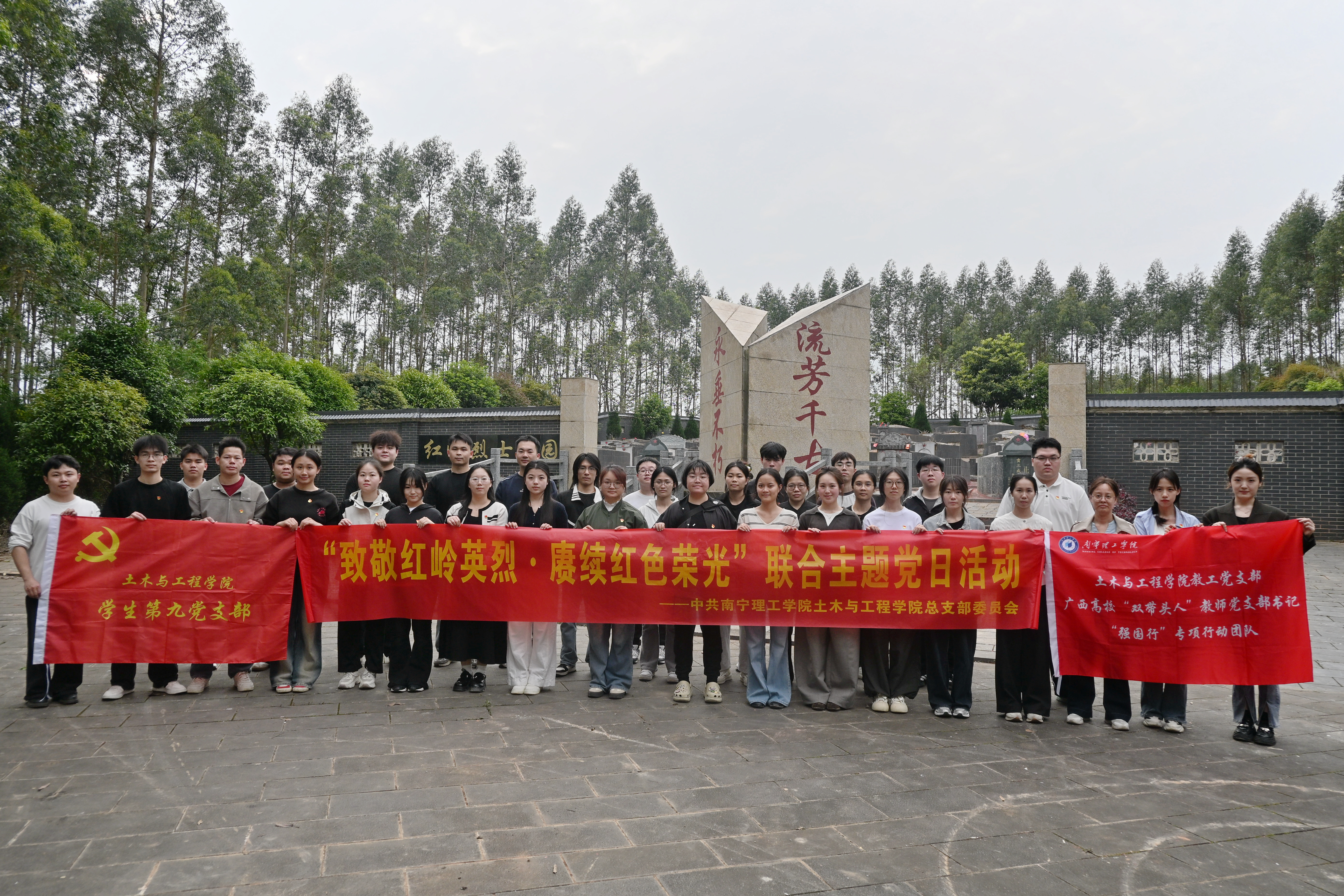 为缅怀革命先烈,厚植爱国主义情怀,中共南宁理工学院土木与工程学院党总支协同象山区退役军人事务局和二塘乡退役军人服务站于象山区红岭烈士陵园联合开展“致敬红岭英烈·赓续红色荣光”主题党日活动。象山区退役军人事务局局长李顺华,南宁理工学院土木与工程学院学生第二、第六、第七、第九及教工党支部代表,以及二塘乡退役军人系统工作人员参加活动。