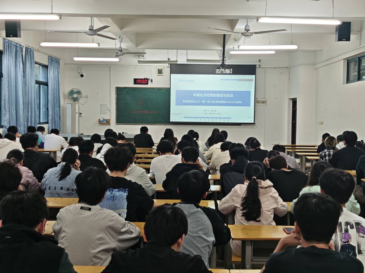 为助力学子夯实学术研究基础,提升论文检索与学术探究能力,充分发挥“鲲鹏计划”对青年成长的赋能作用,2026年4月23日晚7时,中英论文检索的基础与实战主题讲座在1207教室顺利开展。本次讲座特邀梁军燕老师主讲,众多学子到场聆听、交流学习。